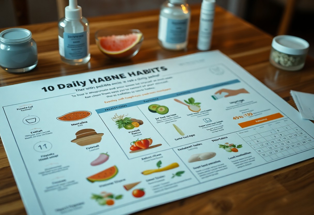 A: The habits include dietary recommendations, hydration tips, stress management techniques, skincare routines, and lifestyle modifications to support overall skin health.